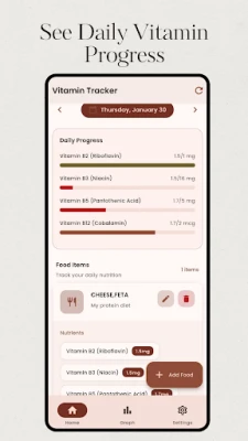 আপনার দৈনন্দিন পুষ্টি উপাদান সম্পর্কে জানতে হিমশিম খাচ্ছেন? আপনার সাপ্লিমেন্টের হিসাব রাখা কঠিন মনে হচ্ছে, নাকি ভিটামিনের অভাব নিয়ে দুশ্চিন্তায় আছেন? আপনি কি ওজন কমানো, নিরামিষাশী বা কিটো ডায়েটের মতো বিশেষ কোনো খাদ্যতালিকায় আছেন এবং নিশ্চিত হতে চান যে আপনার শরীর প্রয়োজনীয় সবকিছু পাচ্ছে? "Vitamin Tracker" নিয়ে এসেছে আপনার সব সমস্যার সমাধান। এটি একটি শক্তিশালী এবং সহজে ব্যবহারযোগ্য অ্যাপ্লিকেশন, যা আপনাকে মাইক্রোনিউট্রিয়েন্ট এবং ম্যাক্রোনিউট্রিয়েন্টের গ্রহণ নিরীক্ষণ করতে সহায়তা করবে, যার ফলে আপনি আপনার স্বাস্থ্যের সম্পূর্ণ নিয়ন্ত্রণ নিতে পারবেন।