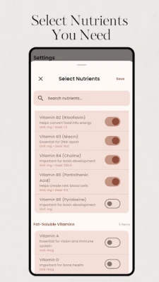 "Ai Vitamin, Supplement Tracker" আপনার দৈনন্দিন পুষ্টি ও সাপ্লিমেন্ট গ্রহণের ট্র্যাক রাখে। এটি ভিটামিন ঘাটতি বুঝতে এবং ওজন কমানো বা বিশেষ ডায়েটে সাহায্য করে। ব্যাপক খাদ্য ডেটাবেস ও সহজ লগিং সিস্টেমের মাধ্যমে মাইক্রো ও ম্যাক্রোনিউট্রিয়েন্ট নিরীক্ষণ করে আপনার স্বাস্থ্য নিয়ন্ত্রণ করুন।