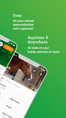 আপনার প্রাণীর দেখভালের জন্য Anymal অ্যাপ শুধু একটি সুসংগঠিত মাধ্যমই নয়, এর মূল লক্ষ্য হলো প্রাণীর স্বাস্থ্য ও কল্যাণ বৃদ্ধি করা। Anymal প্রিমিয়াম সংস্করণে আপনি অতিরিক্ত ফিচার উপভোগ করতে পারবেন, যার মধ্যে রয়েছে ঘোড়া ও ভেড়ার জন্য RVO ইন্টিগ্রেশন এবং উন্নত প্রাণী শেয়ারিংয়ের সুবিধা। আপনার এলাকায় সংক্রামক অশ্ব রোগ সম্পর্কে বিজ্ঞপ্তি পান এবং আমাদের স্বাস্থ্য প্ল্যাটফর্মে আপনার ঘোড়া বা ভেড়ার স্বাস্থ্য সম্পর্কিত যেকোনো প্রশ্ন জিজ্ঞাসা করুন।