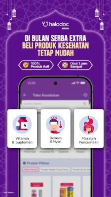 Halodoc-এর মাধ্যমে আপনি বিশেষজ্ঞ বা সাধারণ ডাক্তারদের সাথে চ্যাট, ভয়েস কল অথবা ভিডিও কলের মাধ্যমে দ্রুত এবং সুরক্ষিতভাবে পরামর্শ করতে পারবেন। শিশু বিশেষজ্ঞ, চর্মরোগ বিশেষজ্ঞ, স্ত্রীরোগ বিশেষজ্ঞ, মনোরোগ বিশেষজ্ঞ এবং অন্যান্য বিশেষায়িত ডাক্তাররা ২৪ ঘন্টাই উপলব্ধ। পরামর্শের পর চিকিৎসকের সুপারিশকৃত ঔষধ সরাসরি আপনার বাড়িতে পৌঁছে দেওয়া হবে। ঔষধ, ভিটামিন এবং পরিপূরকের এক বিশাল সম্ভার Halodoc-এর অনলাইন ক্যাটালগে পাওয়া যায়, যা দেশজুড়ে নিকটস্থ ফার্মেসীগুলোর সাথে অংশীদারিত্বের মাধ্যমে দ্রুত আপনার কাছে পৌঁছায়। এছাড়াও, Halodoc Homecare আপনার ঘরে বসে স্বাস্থ্যসেবা নেওয়ার সুযোগ দেয়: এতে আছে ল্যাব পরীক্ষা (রক্ত, প্রস্রাব, পূর্ণাঙ্গ চেক-আপ), বিভিন্ন গুরুত্বপূর্ণ ভ্যাকসিনেশন (যেমন HPV, নিউমোনিয়া, ইনফ্লুয়েঞ্জা), ভিটামিন বুস্টার এবং অভিজ্ঞ ডাক্তারদের আপনার বাড়িতে পরিদর্শনের সুবিধা।