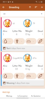"Rabbitry application" এর মাধ্যমে আপনি প্রতিটি খরগোশের সম্পূর্ণ প্রোফাইল তৈরি করতে পারবেন – তাদের জন্ম তারিখ, লিঙ্গ, নিজস্ব প্রজনন বা কাস্টম ব্রিড নাম, ট্যাটু/কানের আইডি এবং ওজন সহ বিস্তারিত শারীরিক ও লোমের বিবরণ যুক্ত করুন। সক্রিয়, বাতিল, বিক্রি হয়ে যাওয়া বা মৃত খরগোশের অবস্থা সহজেই ট্র্যাক করা যায়। পুরুষ ও মহিলা খরগোশের সঠিক আইডি যোগ করে তাদের বংশানুক্রমিক তথ্য সংরক্ষণের পাশাপাশি, সফল ও অসফল প্রজনন পর্ব, litter-এর ওজন ও ইতিহাস, এবং শাবকদের weaning, বিক্রি বা মৃত্যুর সমস্ত রেকর্ড রাখতে পারবেন। এছাড়াও, আপনার খরগোশের স্বাস্থ্য পরীক্ষাগুলি লগ করুন, দৈনন্দিন যত্নের কাজগুলি তালিকাভুক্ত করুন এবং সময় মতো নোটিফিকেশন পান।